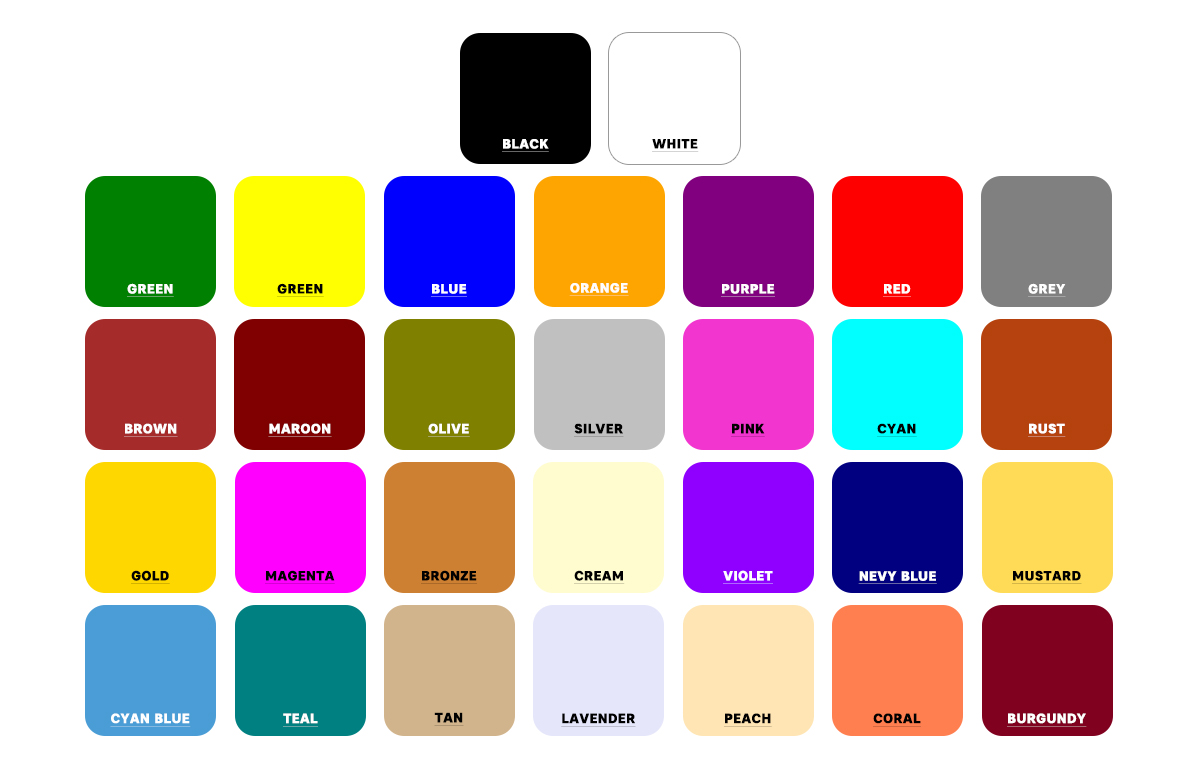 If the colour you have in mind is not in our colour chart, please let us know via email. We will apply the colour you provide to your design.